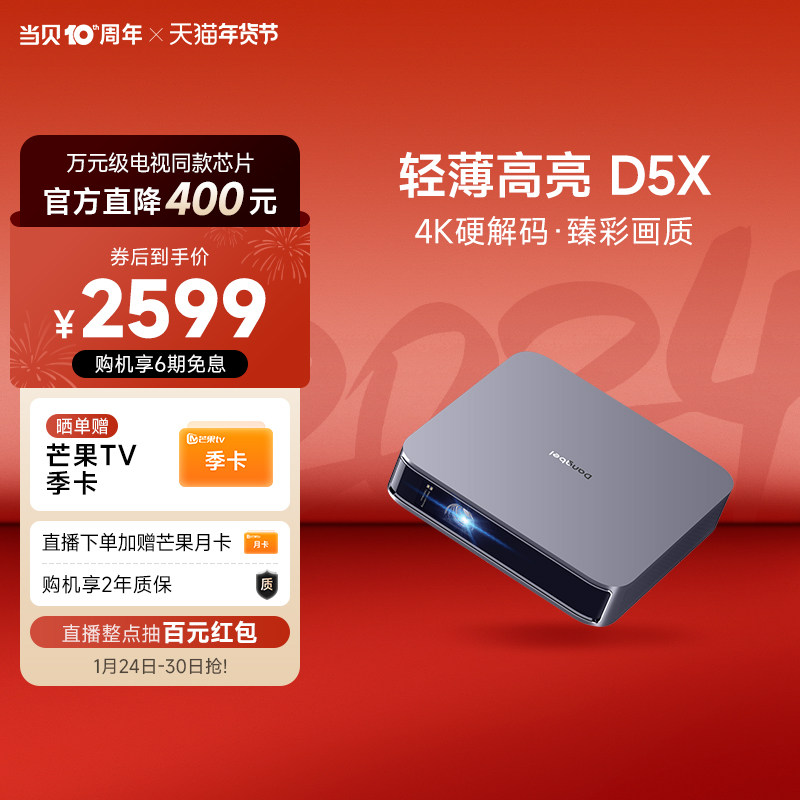 当贝D5X 投影仪家用超高清 投影机客厅卧室投墙投屏 便携智能家庭影院手机投影投屏 游戏娱乐低蓝光护眼