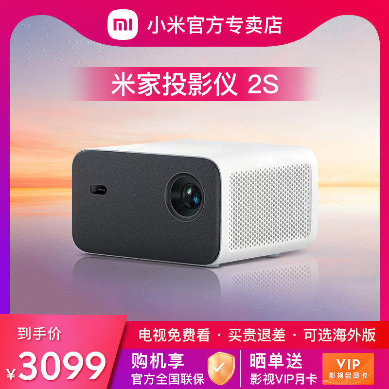 小米米家投影仪2S 家用超高清1080P客厅手机无线投屏宿舍卧室投墙办公用会议智能海外投影机家庭影院娱乐K歌