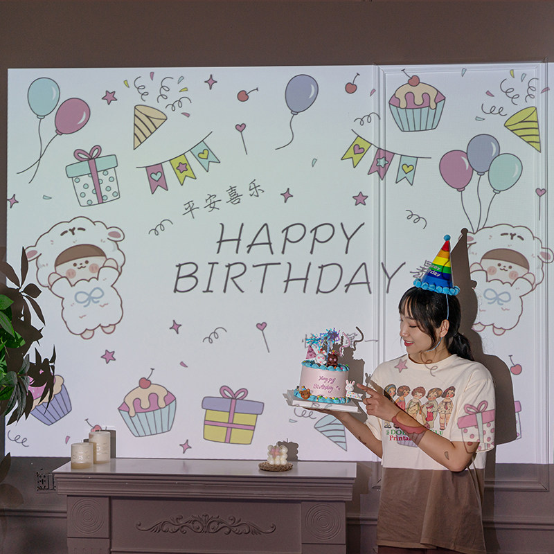生日快乐装饰品场景布置氛围投影仪灯背景墙创意拍照道具女孩派对