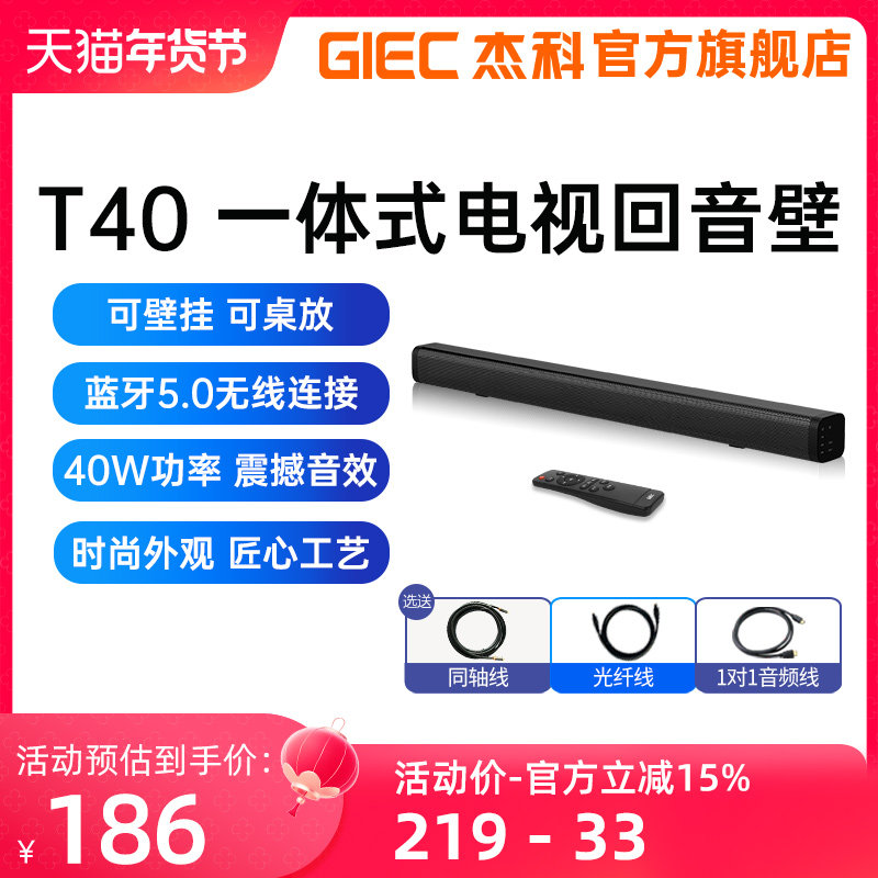 杰科T40电视回音壁音响5.1环绕立体声投影仪外接蓝牙音箱家庭影院