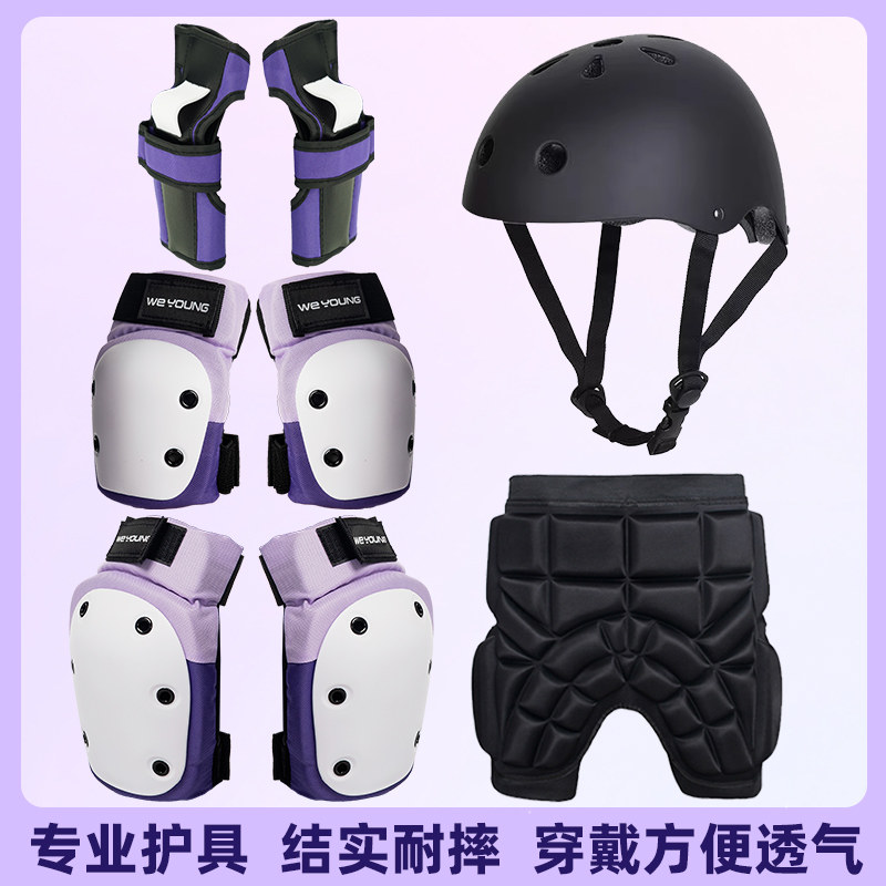 滑板护具专业轮滑儿童成人滑冰护膝护肘护掌六件套装头盔陆冲溜冰