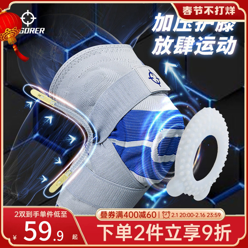 户外登山徒步篮球骑行跑步加强护具四弹簧支撑护膝硅胶防滑半月板