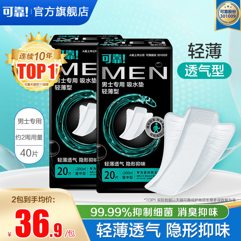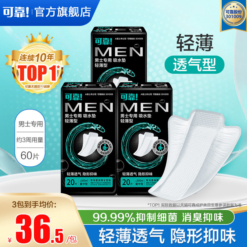 可靠男士吸水垫漏尿护垫男用卫生巾柔薄吸水巾净味量多3包*20片