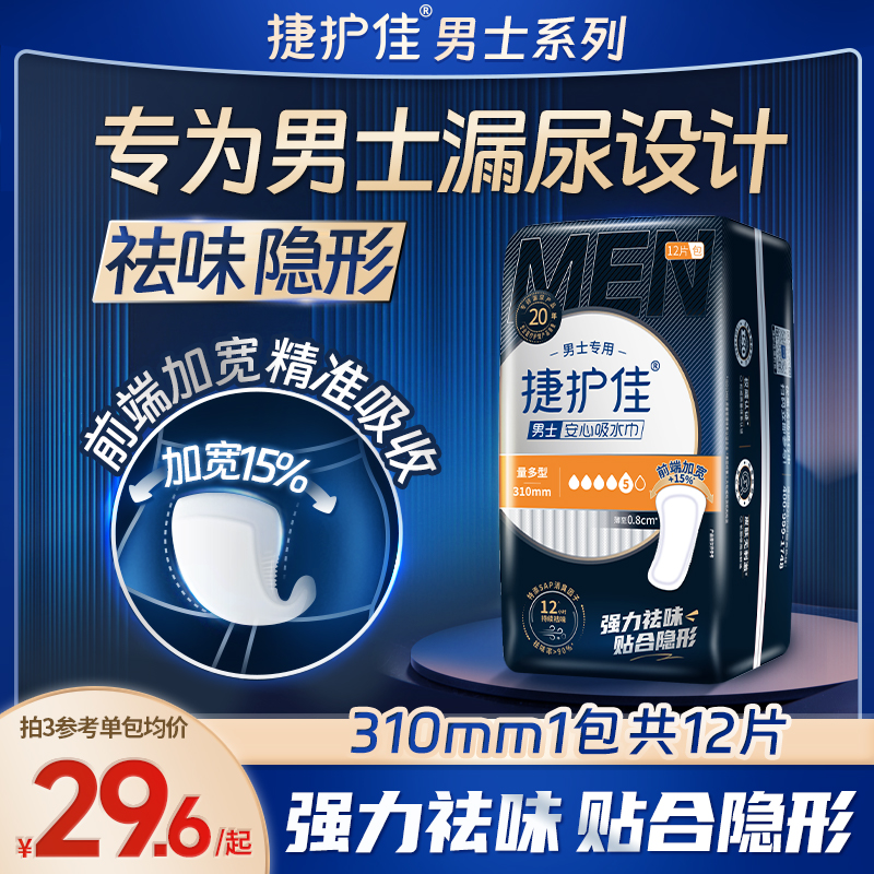 捷护佳男士安心垫310mm12片姨夫巾男漏尿卫生巾老年男用吸尿护垫
