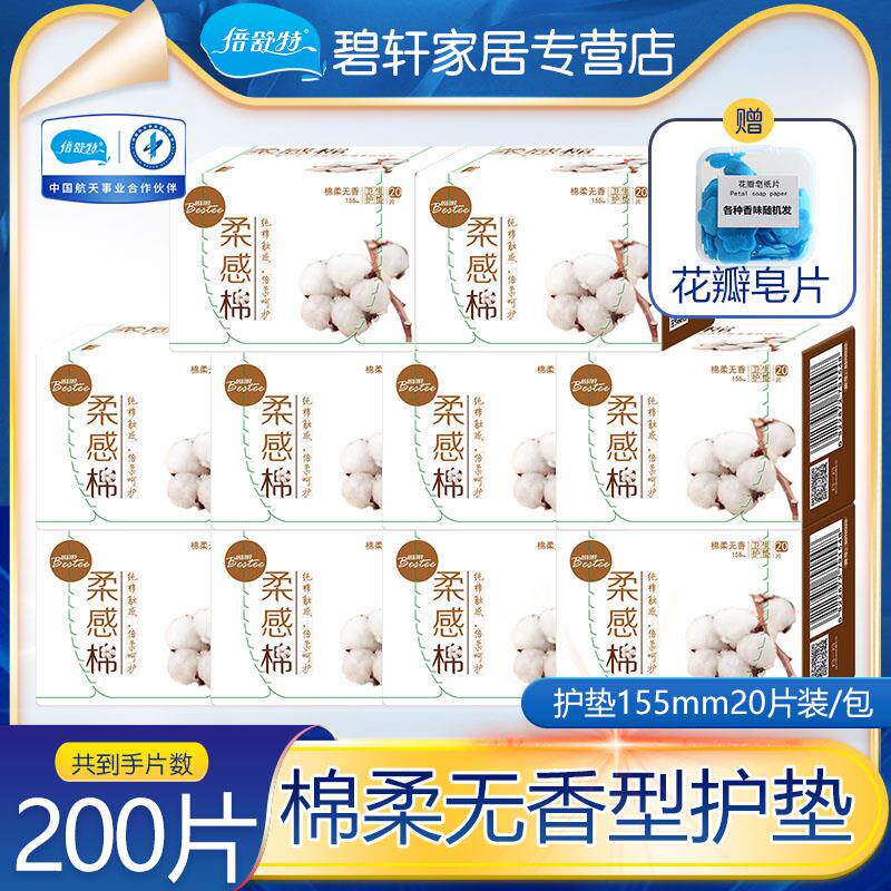 护舒宝卫生巾透气纯棉感轻薄护垫淡香/无香40片*5包棉柔表层