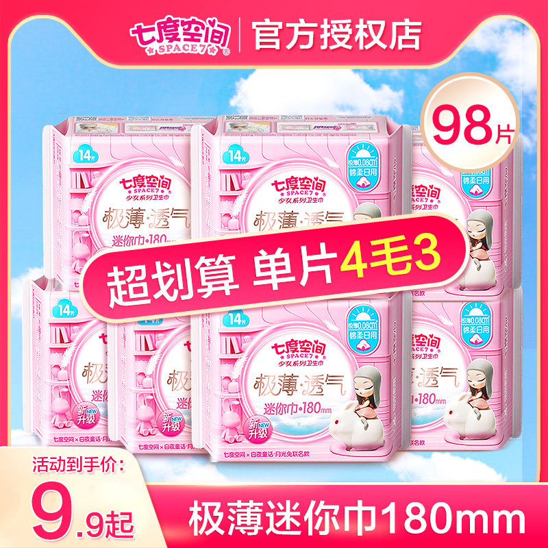 七度空间迷你卫生巾护垫180mm极薄棉柔日用姨妈女正品官方旗舰店