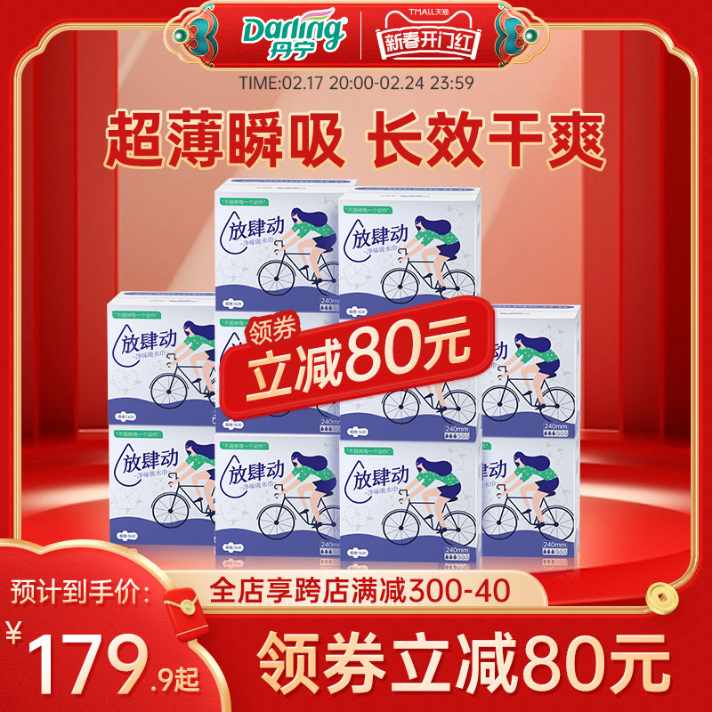 自由点卫生巾益生菌护垫155mm超薄亲肤透气学生姨妈巾整箱