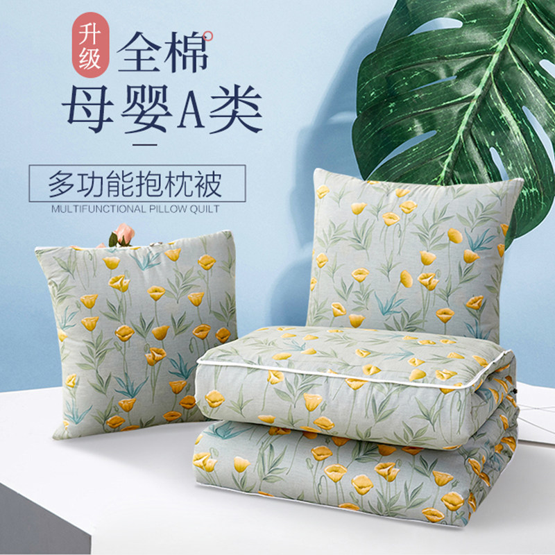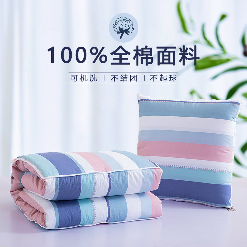 恒源祥抱枕两用被子纯棉二合一车载折叠午睡靠枕头办公室沙发毯子