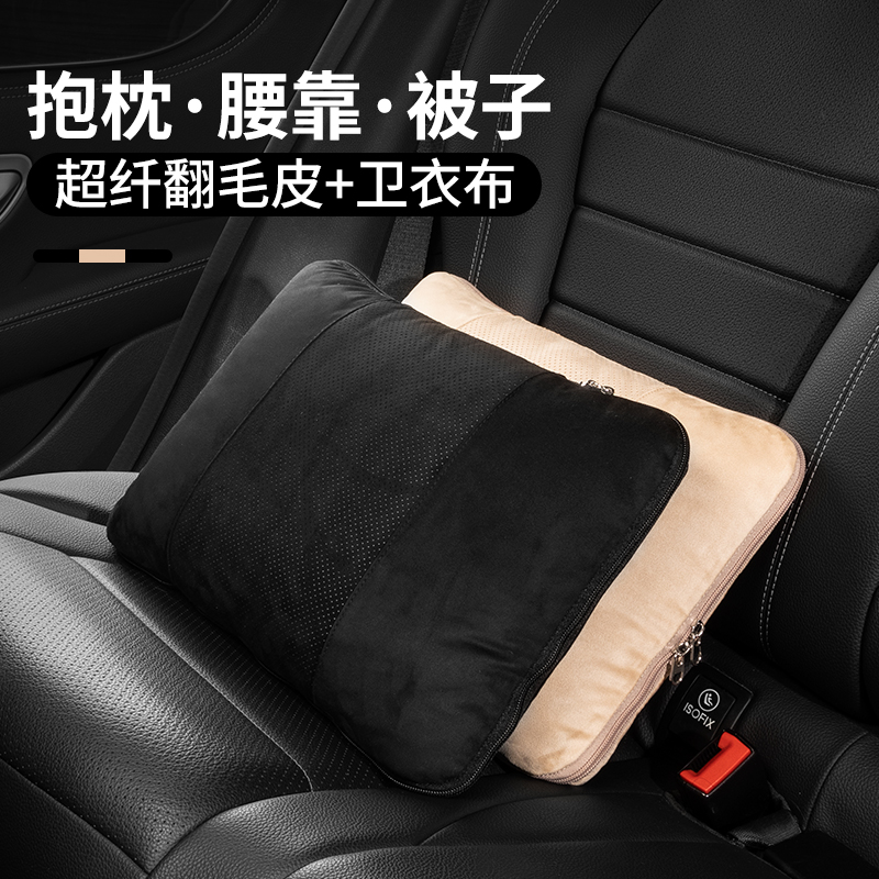 汽车抱枕被子两用枕头靠枕腰靠高档二合一车载后排睡觉折叠空调毯