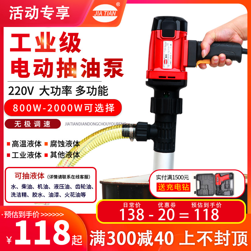 特众220V大功率手提式电动抽油泵油桶泵柴油泵抽油机加油泵抽酒泵