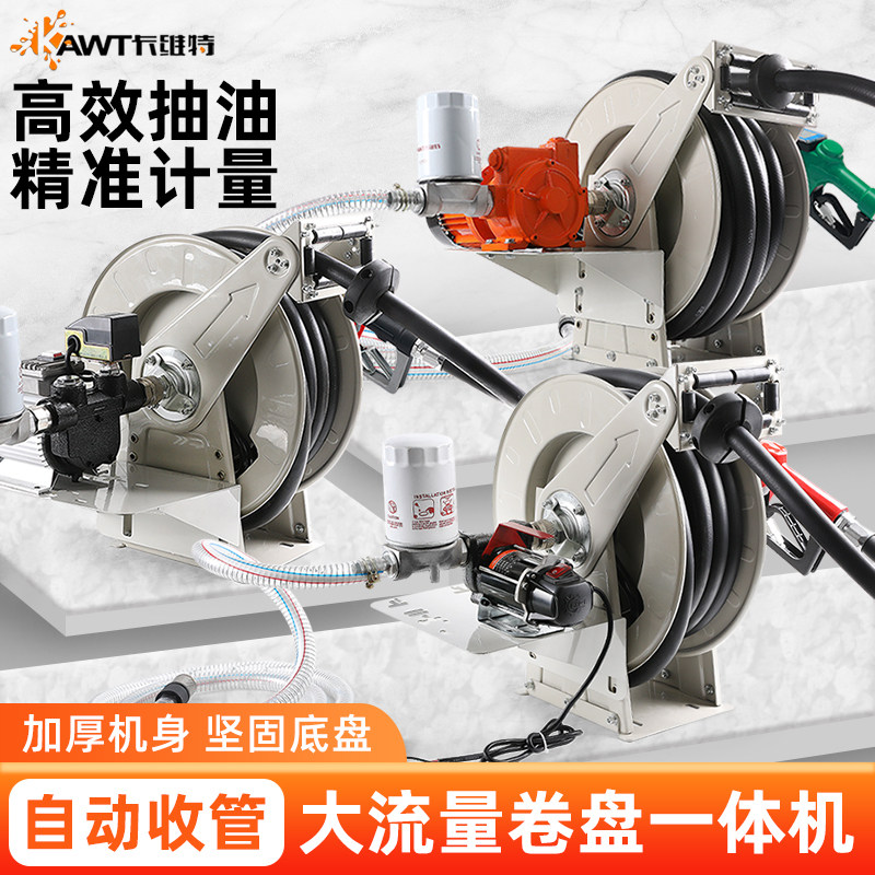 加油机12v24v220v伏电动抽油泵柴油车载计量计价小型自启停卷盘机