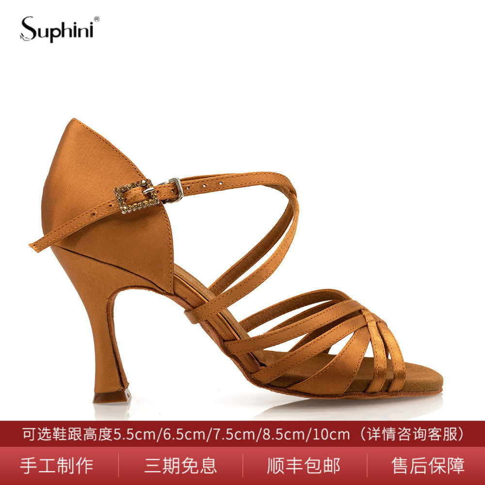 三莎专业拉丁舞鞋女成人真丝缎面软底中高跟国标交谊广场夏舞蹈鞋