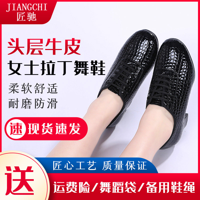 匠驰拉丁舞鞋女成人真皮中底跟软底水兵舞交谊舞广场舞摩登舞蹈鞋