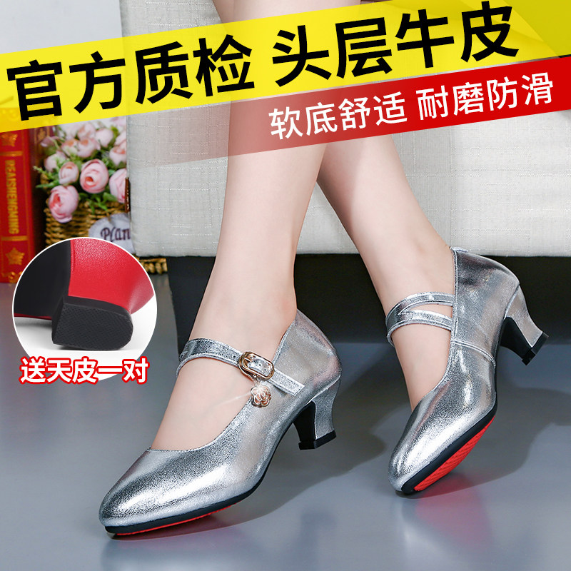 真皮舞蹈鞋女成人跳舞不累脚的软底广场拉丁交谊舞鞋皮鞋新款女鞋