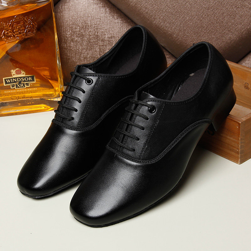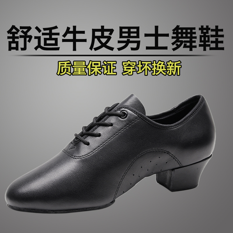 真皮拉丁舞鞋男士漆皮摩登舞鞋广场舞蹈鞋直板底国标舞亮皮交谊舞