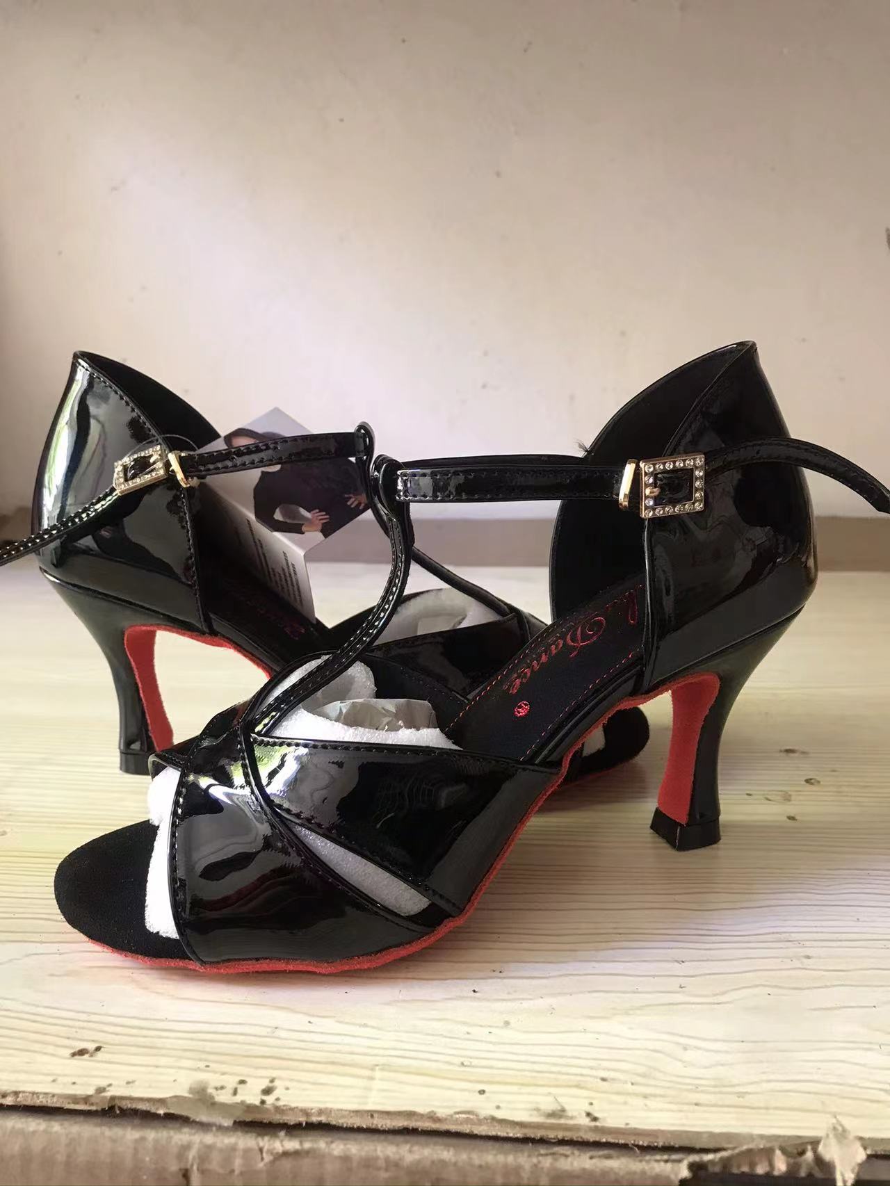 特丝丽她专业拉丁舞鞋女中跟亮皮跳舞鞋软底形体鞋室外恰恰舞蹈鞋