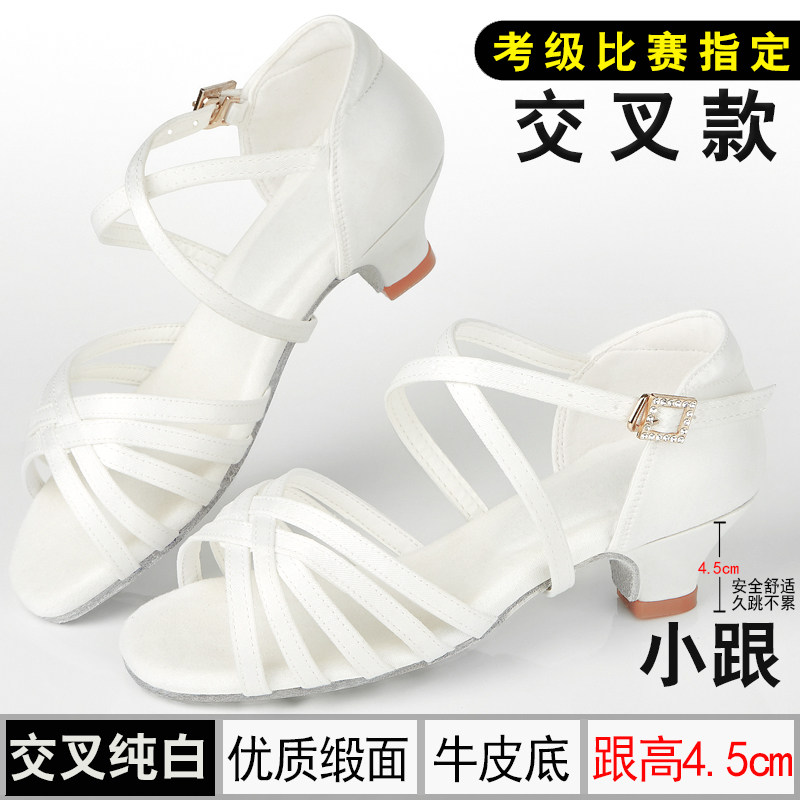 新款专业拉丁舞鞋儿童练功鞋初学者白色舞鞋女童跳舞软底鞋舞蹈鞋