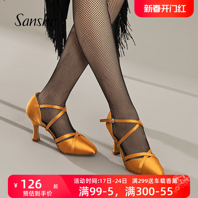Sansha 法国三沙成人女拉丁舞鞋四季穿中高跟新款软底交谊国标舞