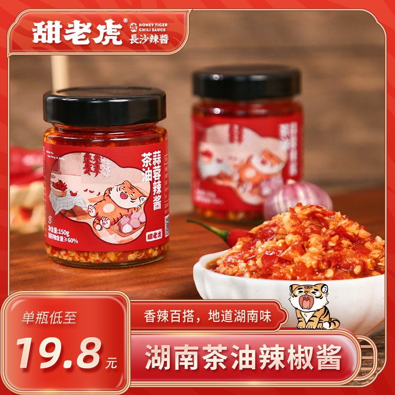 甜老虎辣椒酱湖南特产蒜蓉辣酱拌饭拌面调味酱贡菜萝卜下饭菜辣酱
