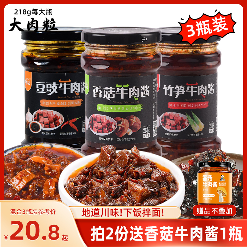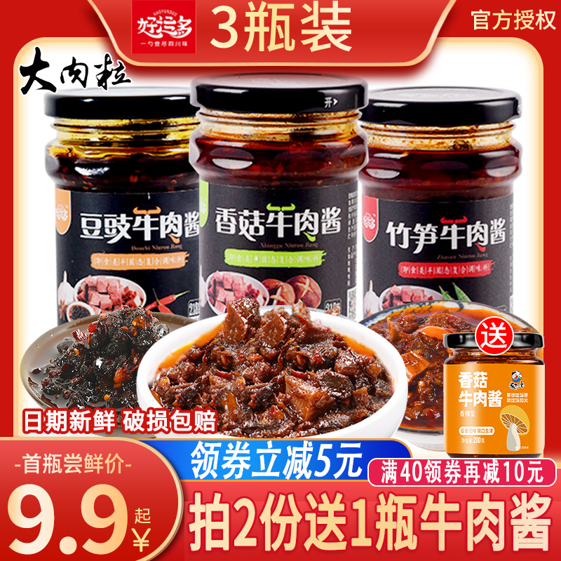 好运多牛肉酱香菇竹笋拌饭酱香辣辣椒酱218g*3瓶装豆豉拌面酱料