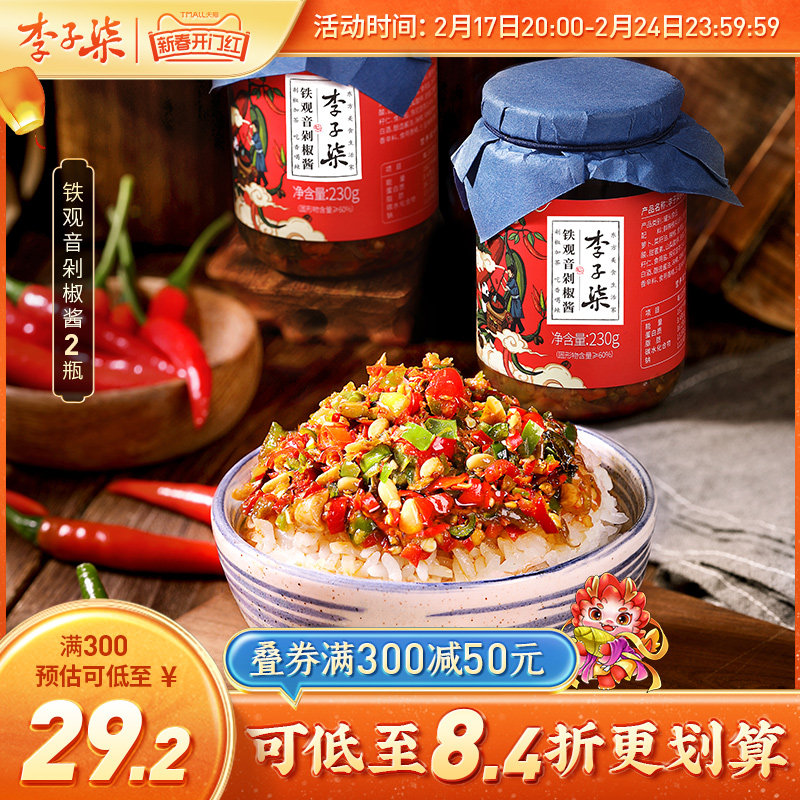 李子柒铁观音剁椒酱四川辣椒酱拌饭下饭菜香辣拌面条辣酱230*2瓶