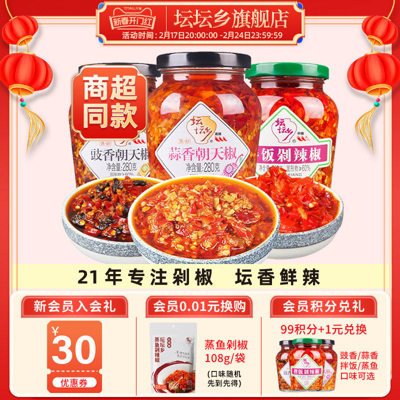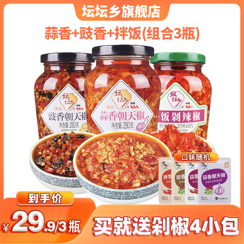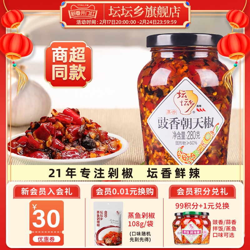 坛坛乡豉香朝天椒豆豉辣椒酱280g瓶装风味湖南特产家用做菜拌饭面