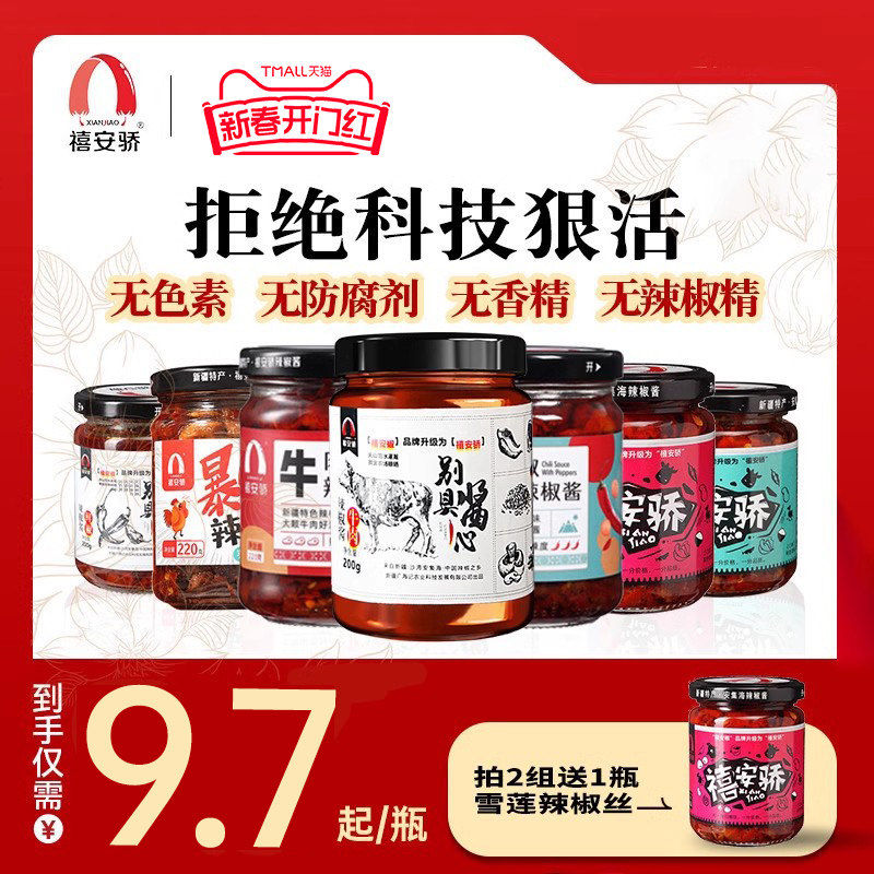 禧安骄新疆牛肉辣椒酱雪莲辣椒丝鸡肉260g拌饭下饭酱组合装