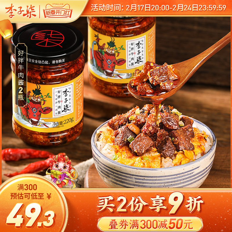 李子柒好拌牛肉酱拌饭酱香辣拌面调味酱料下饭调味酱料220g*2瓶