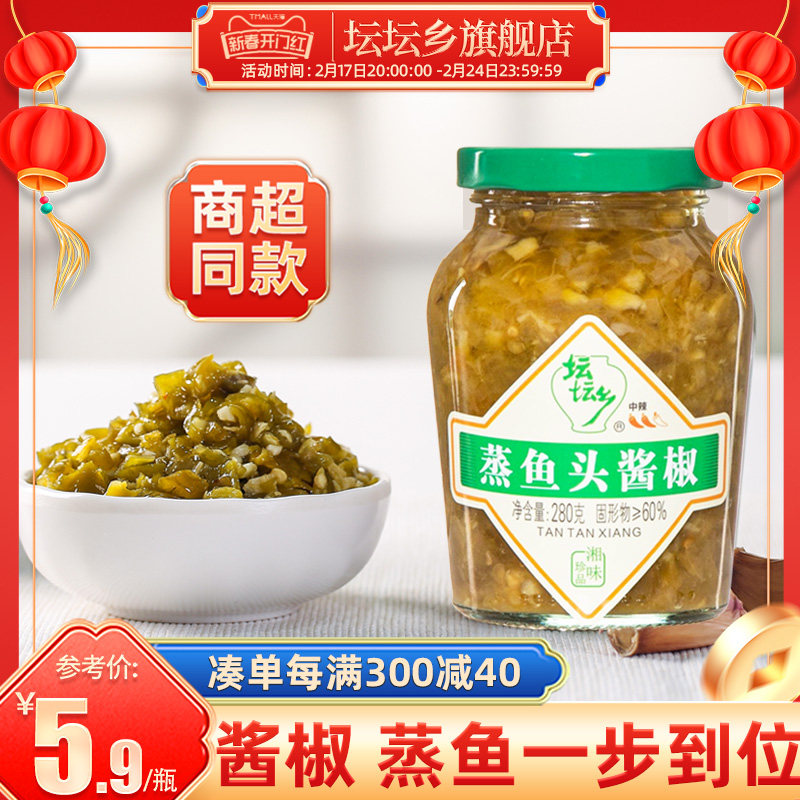 坛坛乡蒸鱼头酱椒280g瓶装开味泡椒拌饭辣椒酱青剁椒湖南特产拌面