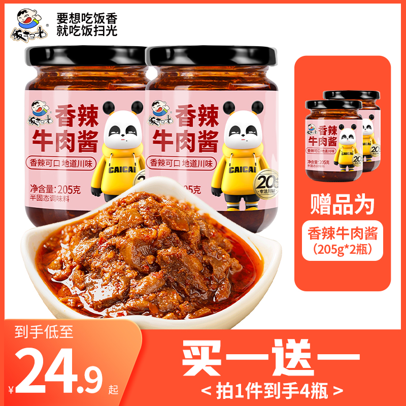 饭扫光香辣牛肉酱205g*2瓶拌面拌饭四川泡菜咸菜佐餐拌饭酱下饭酱