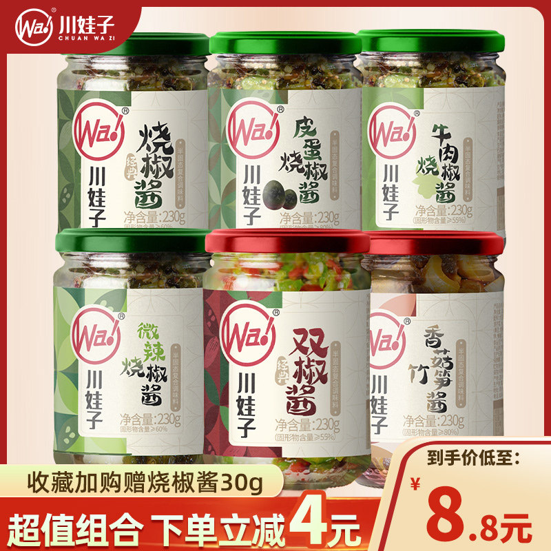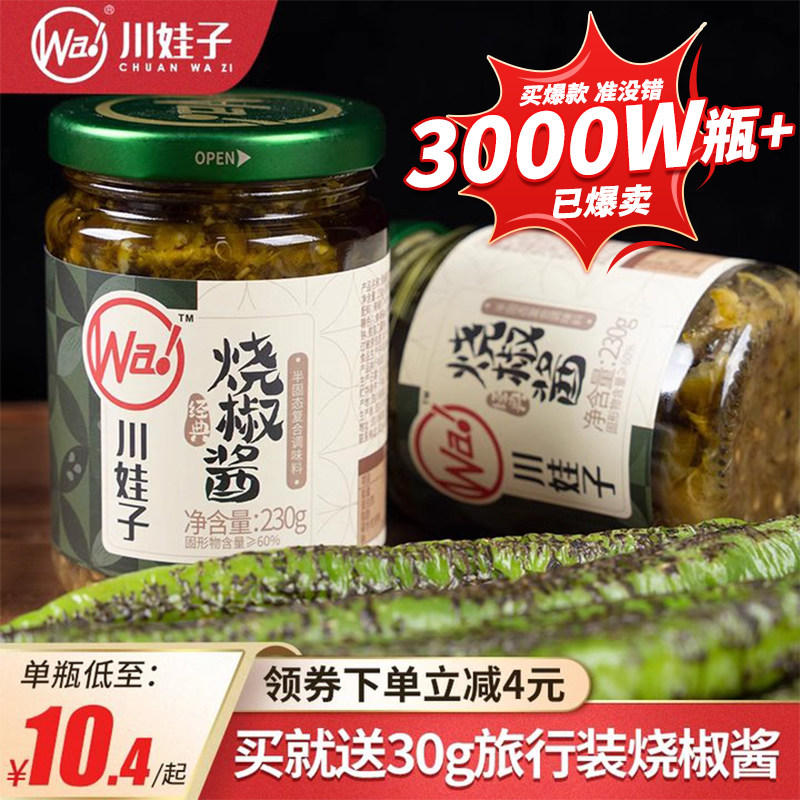 川娃子炭烧烧椒酱蒜蓉辣椒酱230g*4四川拌饭虎皮青椒酱拌面下饭菜