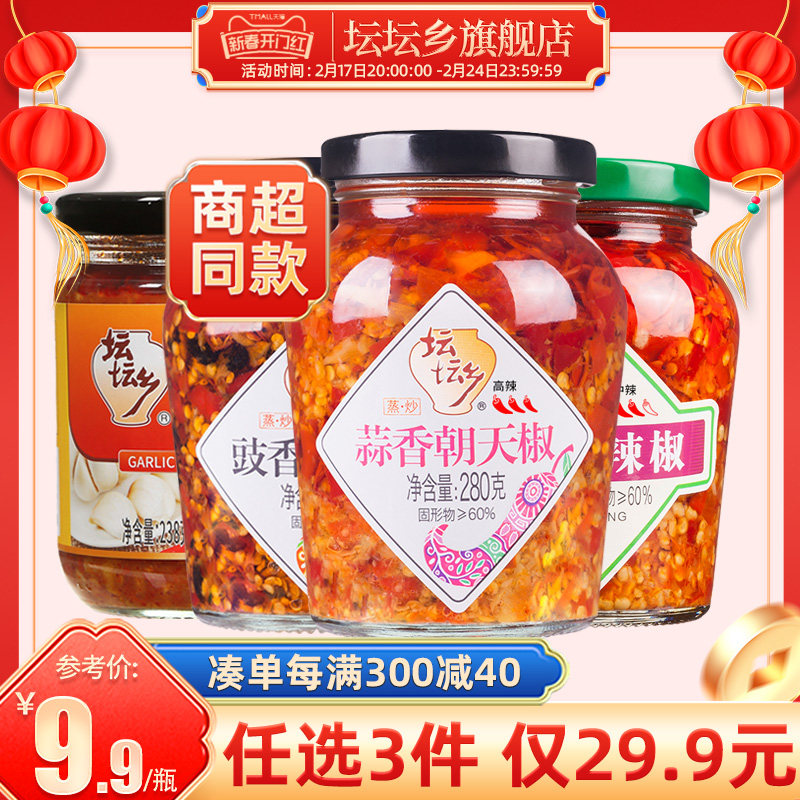 坛坛乡湖南长沙辣椒酱拌饭酱剁辣椒鱼头豉香蒜蓉朝天椒拌面超下饭