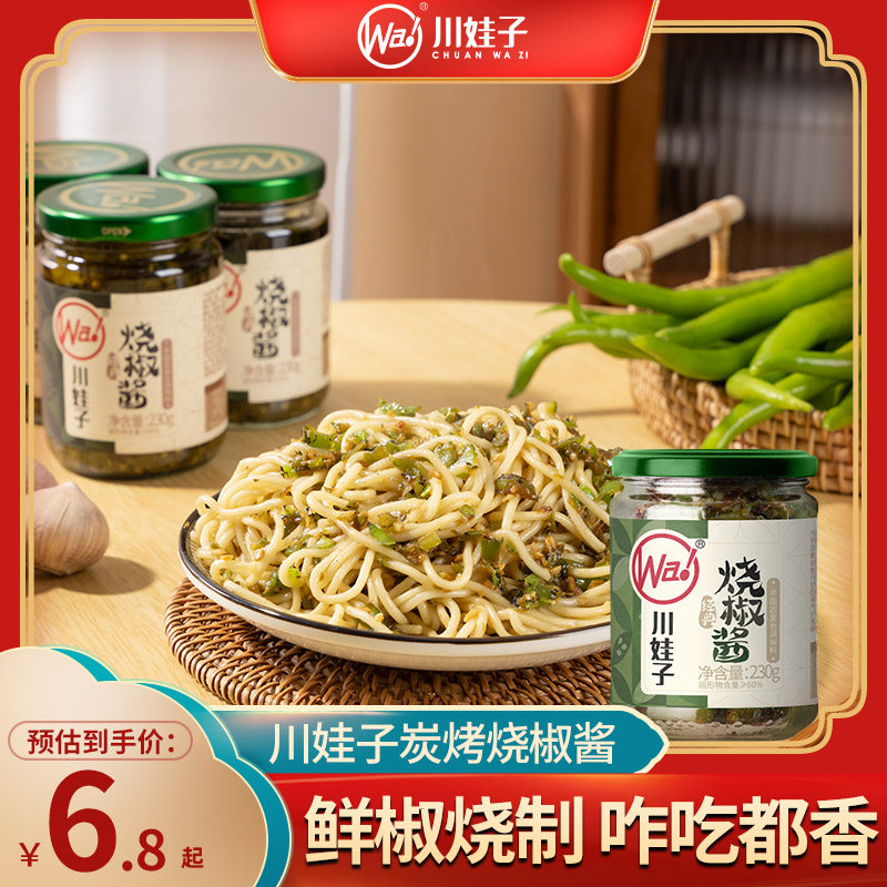川娃子炭烤烧椒酱蒜蓉辣椒酱四川拌饭虎皮青椒酱剁椒酱拌面下饭菜