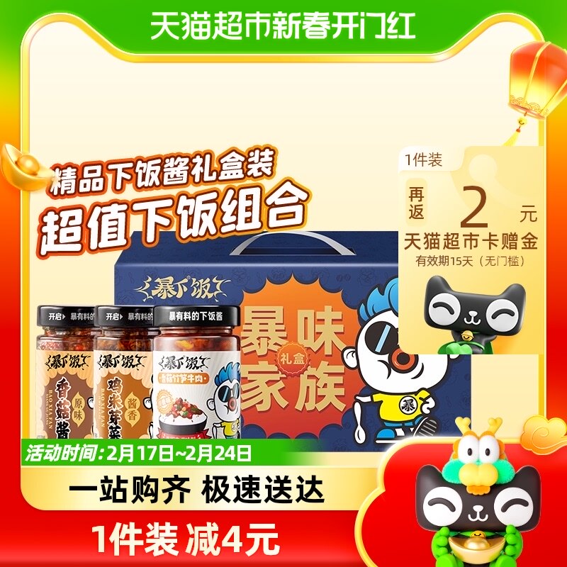 吉香居暴下饭川香鸡米芽菜香菇酱200g*3瓶拌饭拌面辣椒酱礼盒装