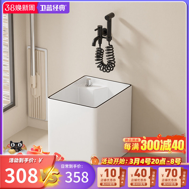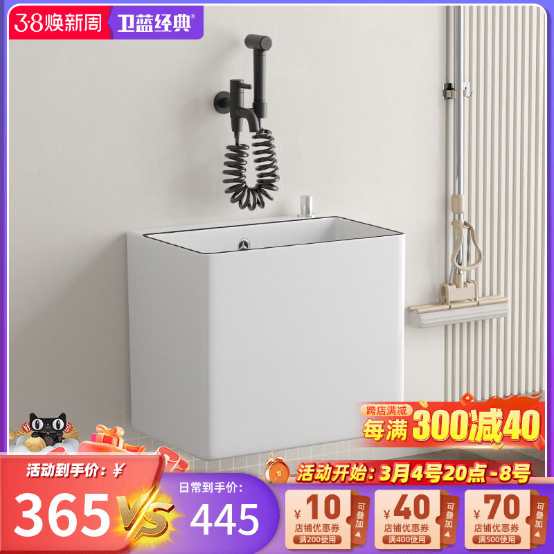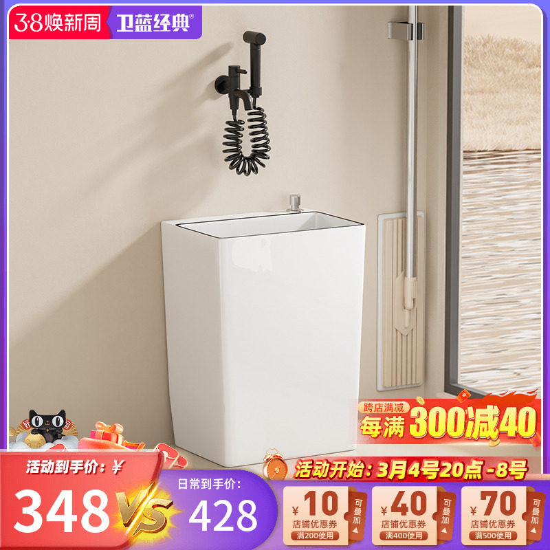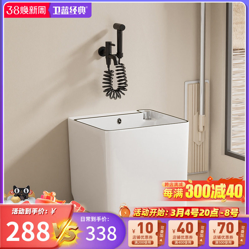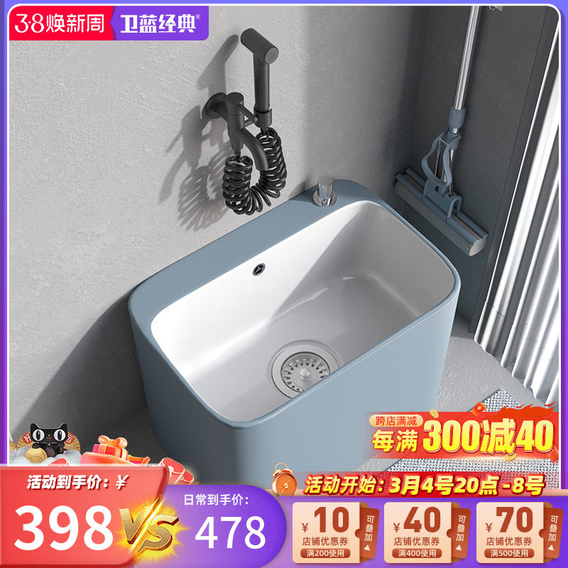 卫蓝经典拖把池陶瓷洗拖把池拖布池落地式家用阳台地拖盆墩布池I8