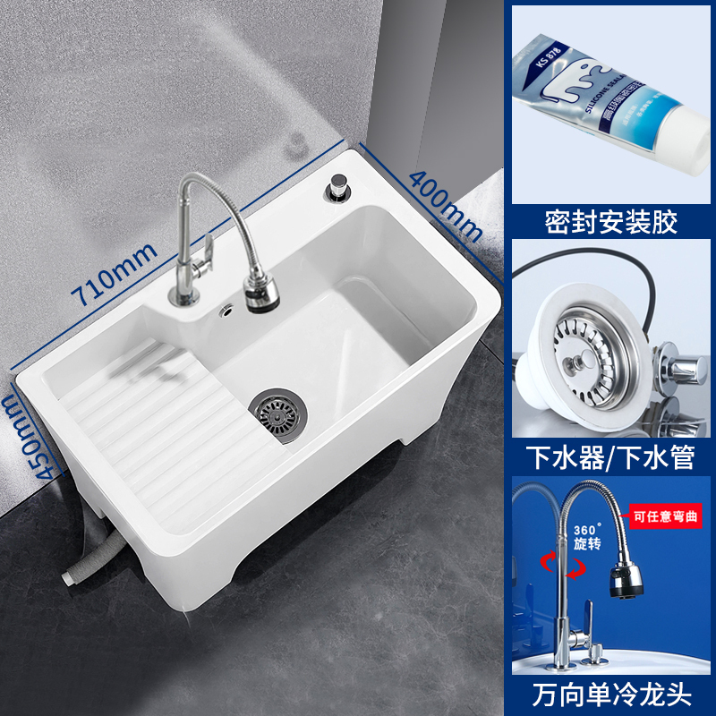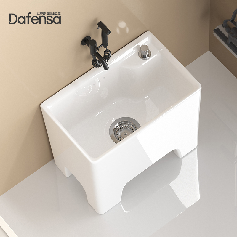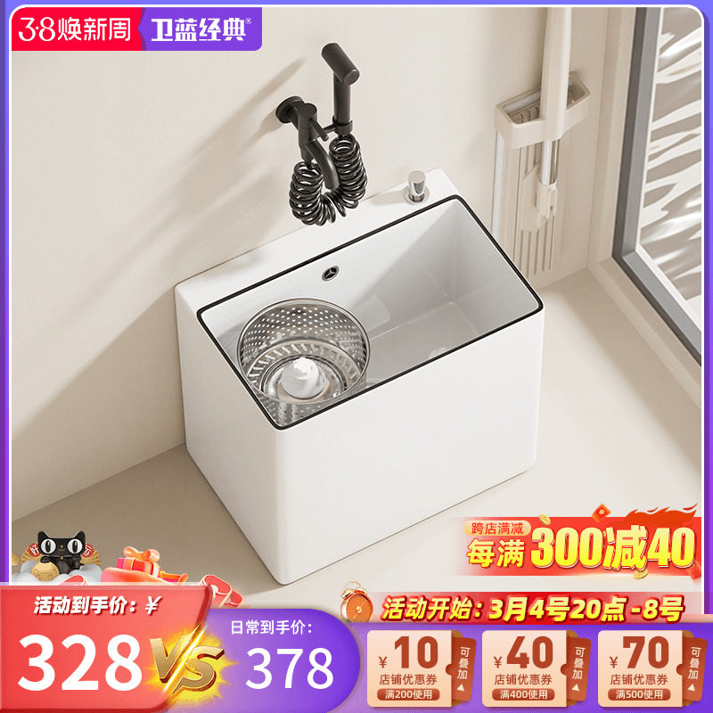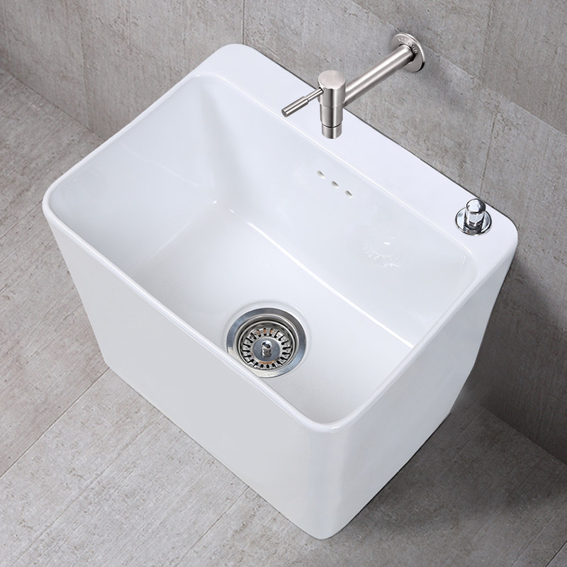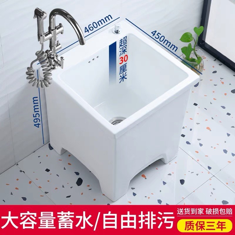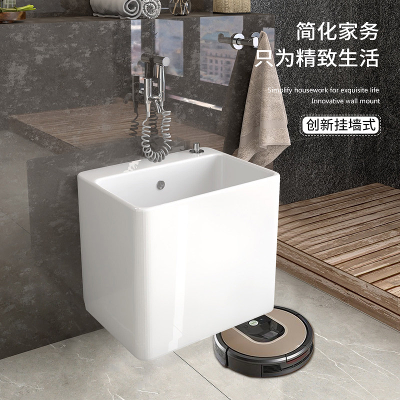 家用陶瓷拖把池龙头一体小户型卫生间洗地拖布池阳台小号水槽盆竖
