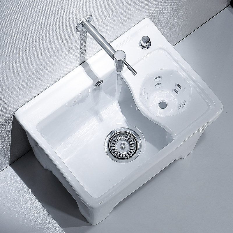 阳台洗衣盆拖把池龙头一体陶瓷拖布池大号墩布池洗拖布盆带搓衣板