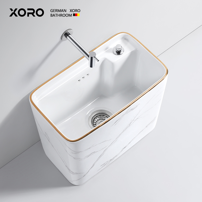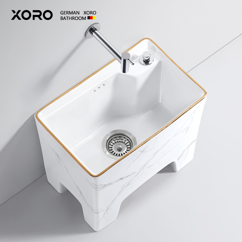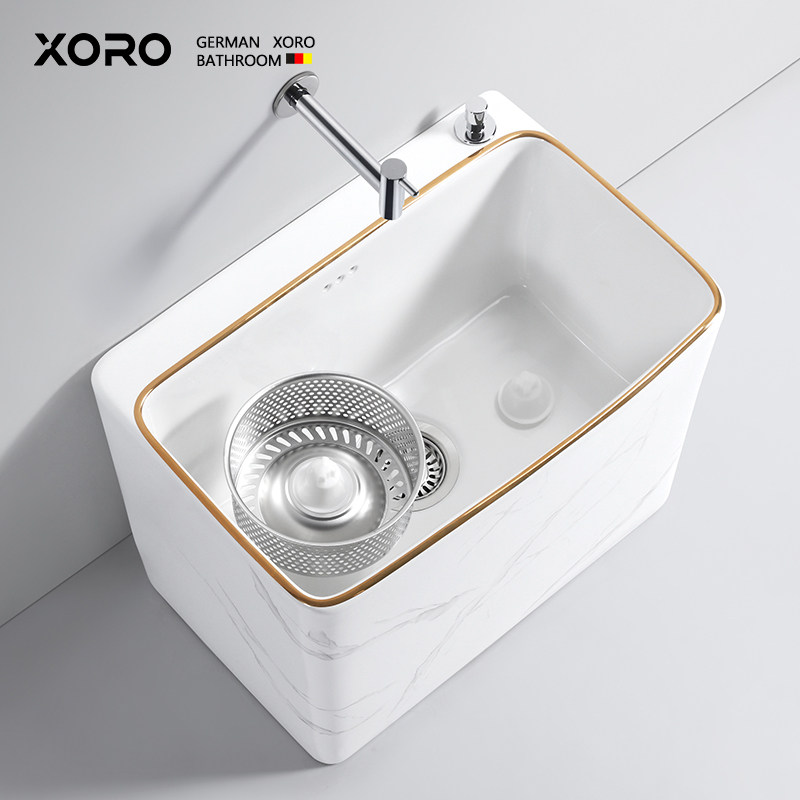 德国XORO新款拖把池家用阳台轻奢石纹拖布池卫生间高脚陶瓷墩布池