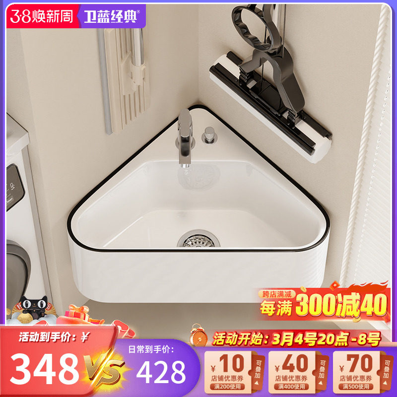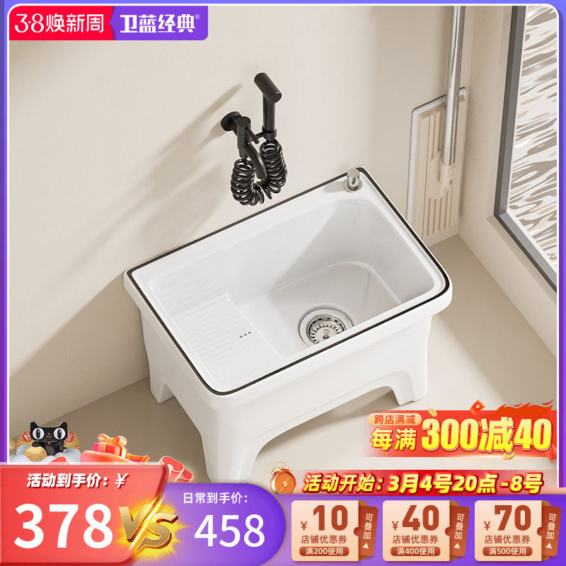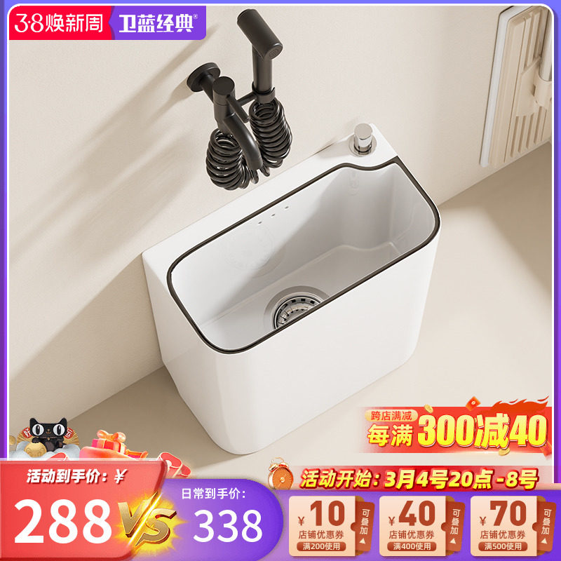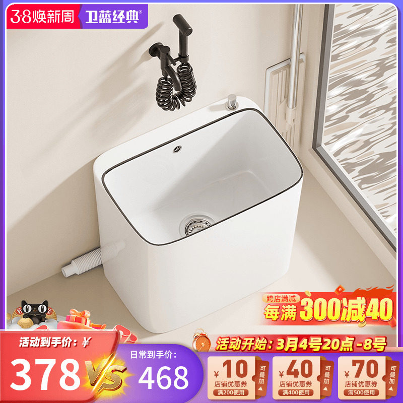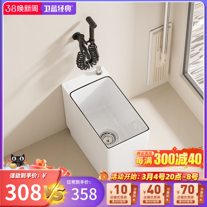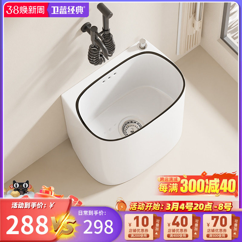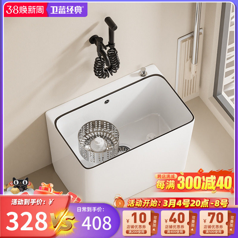 卫蓝经典拖把池带龙头一体阳台拖地池拖布池卫生间陶瓷洗脚池R11