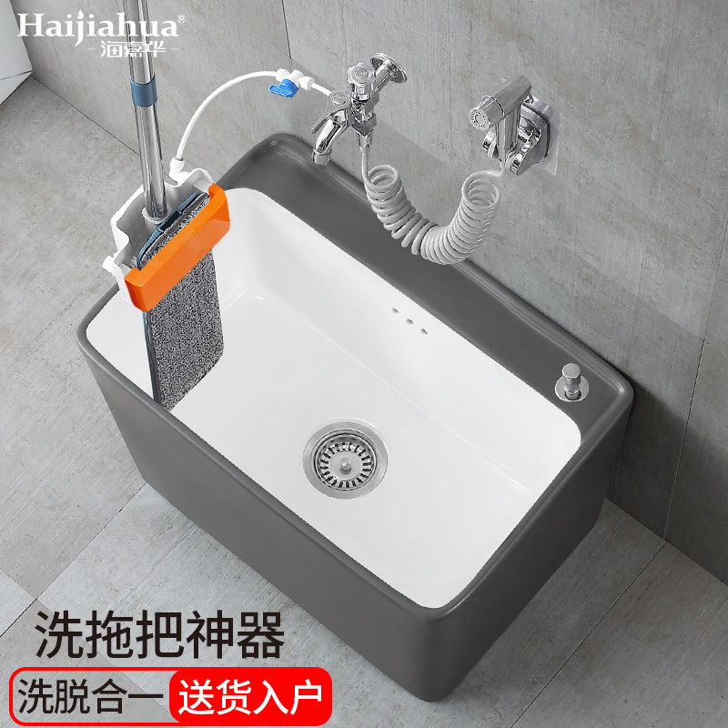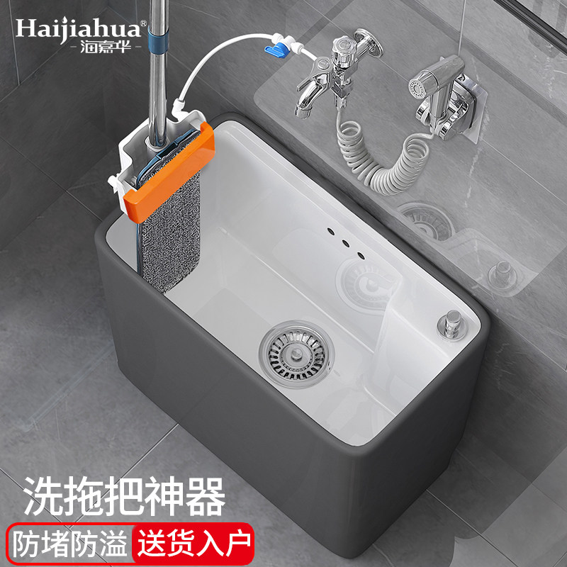 海嘉华洗拖把池地盆家用阳台陶瓷一体式拖布池墩布池拖把盆地拖池