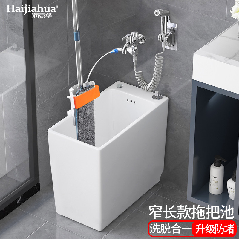 洗拖把池家用卫生间地盆拖布池窄长型小号阳台墩布槽陶瓷落地水池