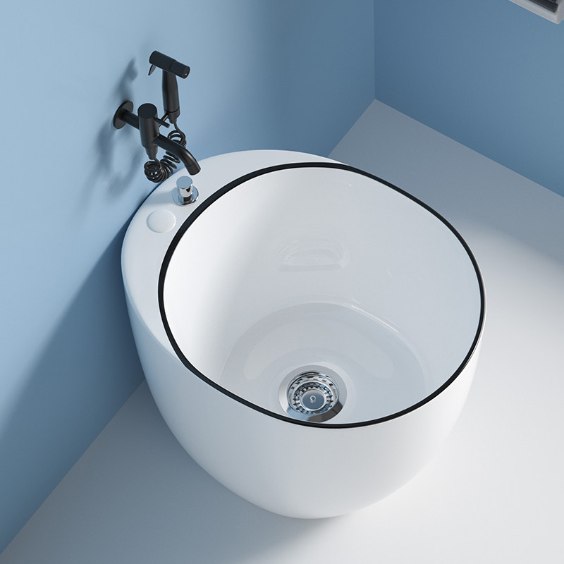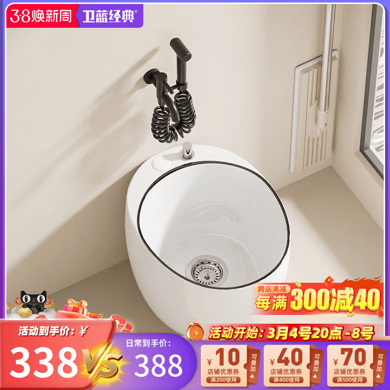卫蓝经典鹅蛋拖把池阳台洗脚盆卫生间陶瓷泡脚池带龙头墩布池W101