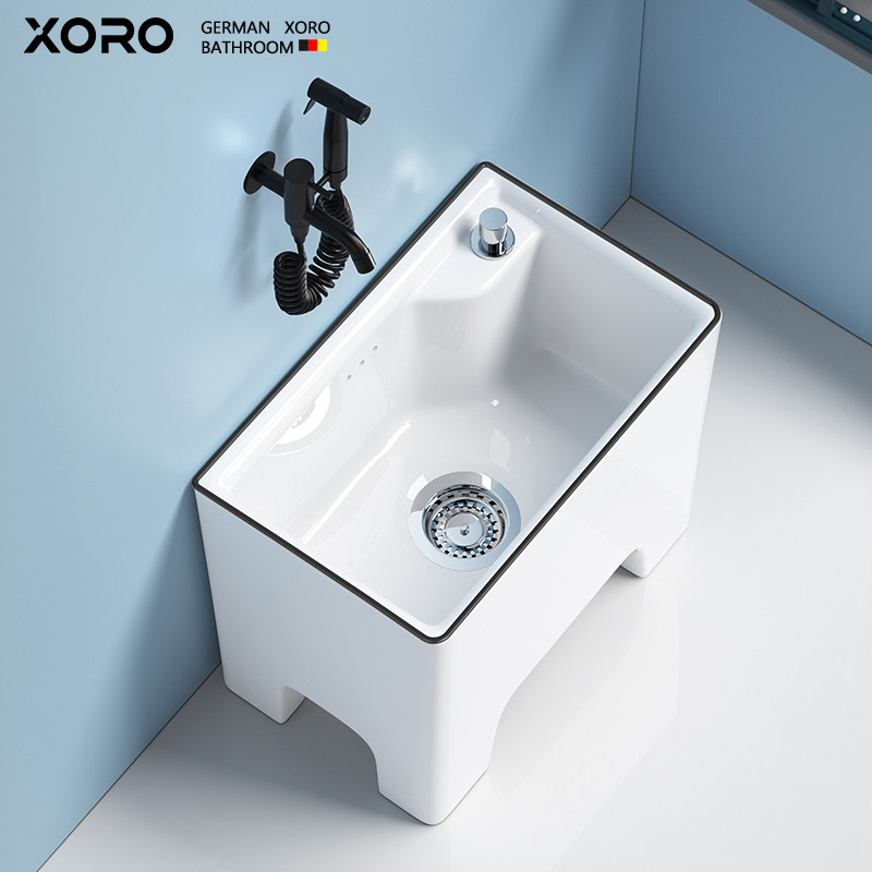 德国xoro陶瓷拖把池家用阳台卫生间高脚洗拖布池地盆黑色墩布池槽
