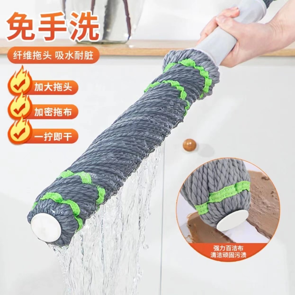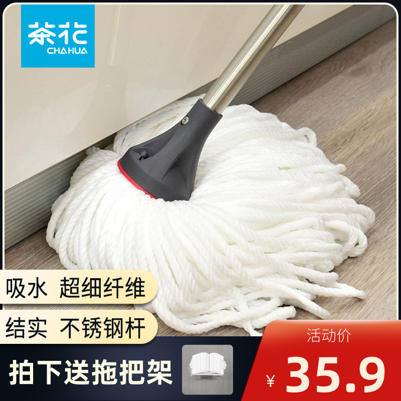 茶花拖把家用一拖净老式吸水除尘棉线水拖干湿两用拖把瓷砖清洁拖