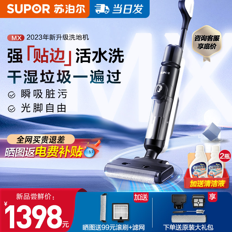 苏泊尔洗地机拖吸一体机智能自清洁除菌全自动扫拖吸三合一拖把MX