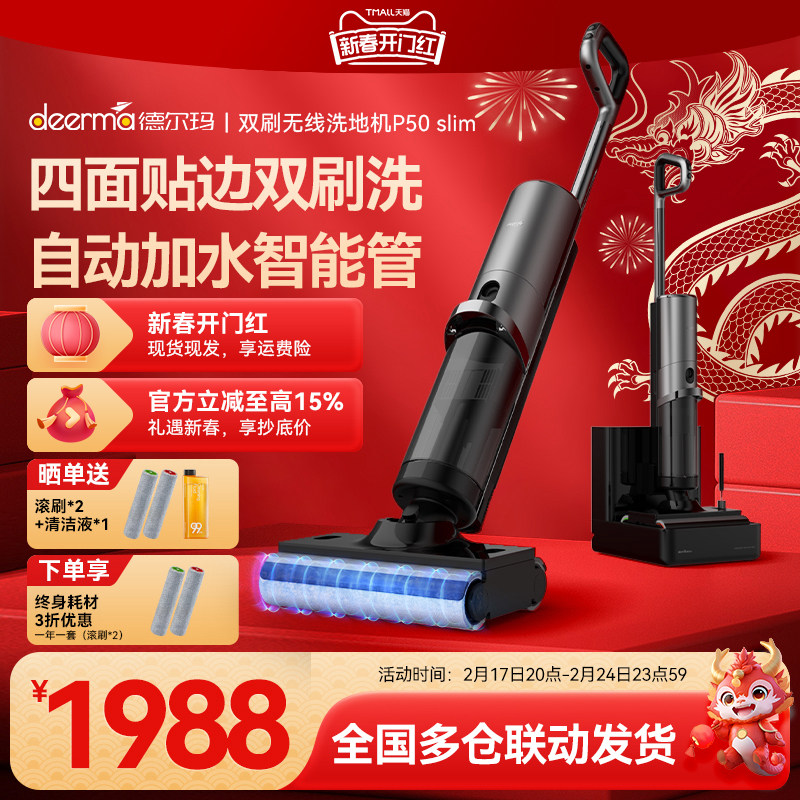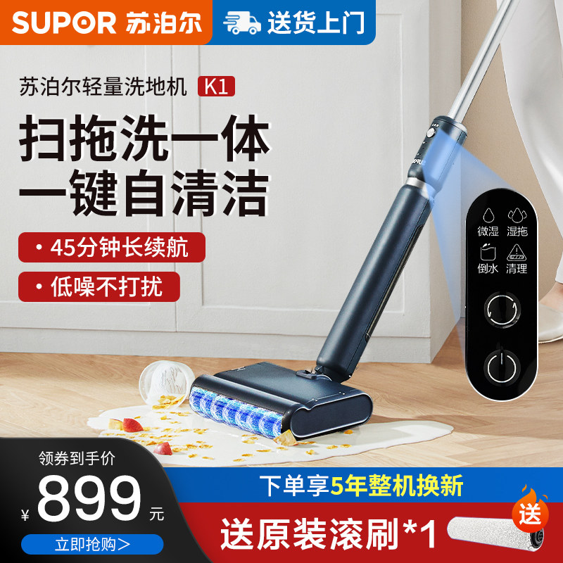 苏泊尔洗地机家用自动清洗智能拖吸一体机三合一电动扫脱拖把K1
