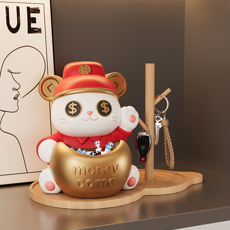 招财猫入户门口钥匙收纳摆件玄关鞋柜客厅轻奢高档家居装饰品乔迁