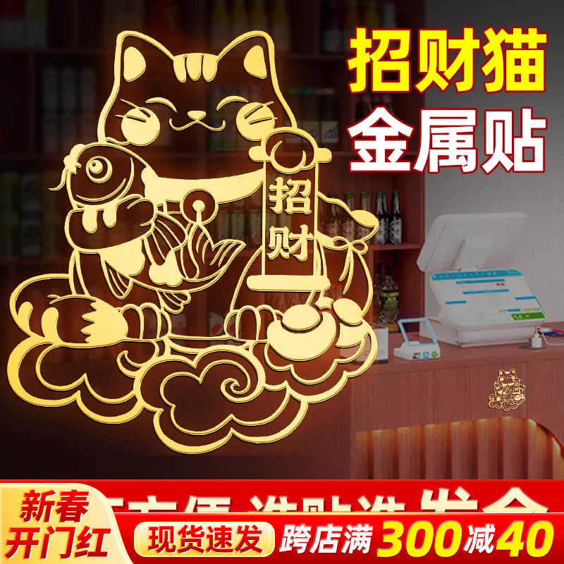 招财猫摆件入户店铺开业礼物装饰品金属贴可爱创意门贴桌面手机贴