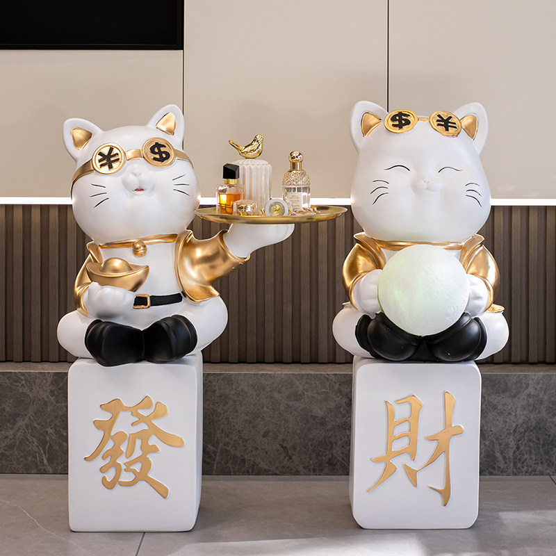 招财猫大型落地摆件家居饰品客厅沙发旁茶几托盘收纳乔迁新居礼品