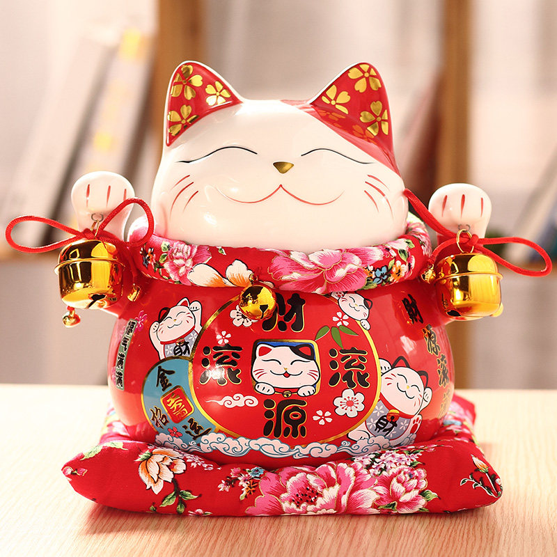 招财猫小摆件陶瓷创意礼品家居装饰日本存钱罐客厅家用开业发财猫